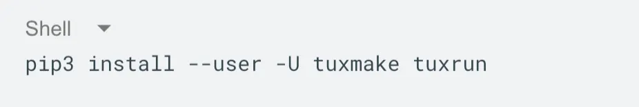 Then the simplest way to get started is to install both TuxMake and Tux Run using pip.
